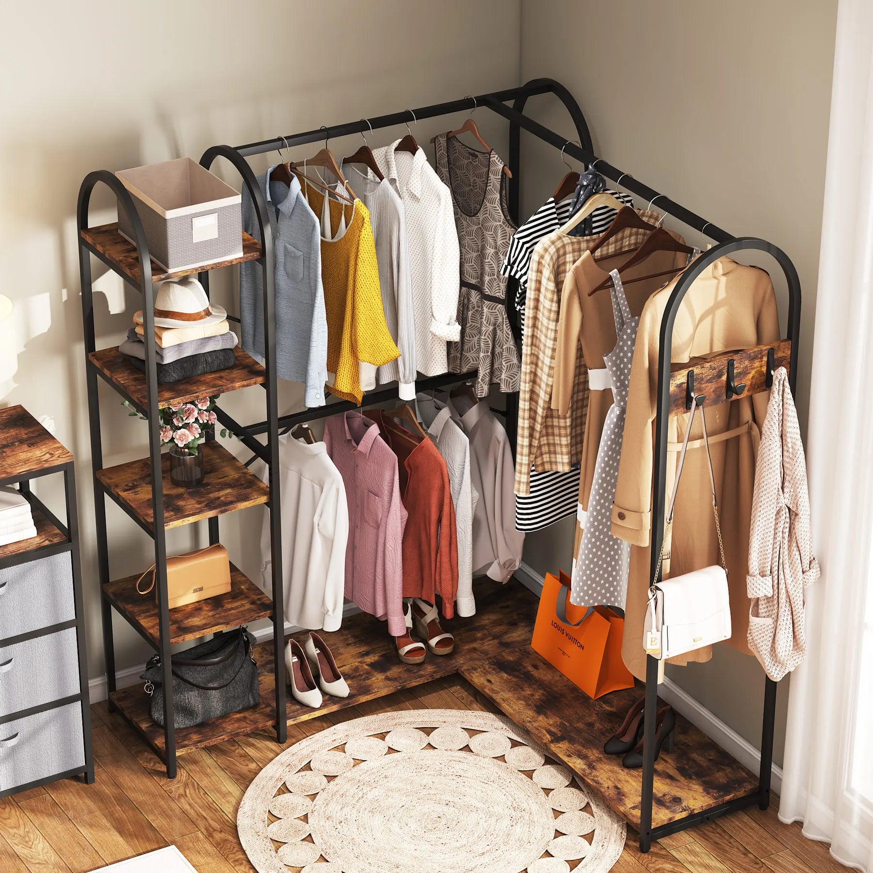 L Shaped Clothes Rack & Corner Rack With Shelves